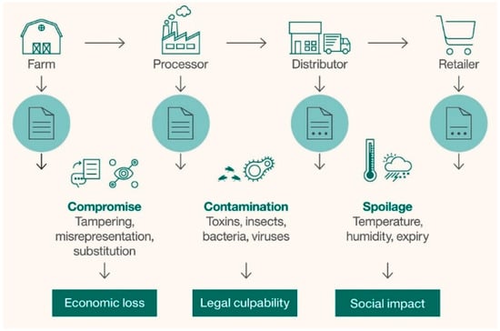 Blockchain can help digitally trace and authenticate food products from an ecosystem of suppliers to store shelves and ultimately to costumers (Figure 3). IBM, Walmart and Nestle are aspiring to use blockchain for more transparent, authentic and trustworthy global food supply chain [52]. Several existing applications combine blockchain and food technology, with the primary idea being to solve food safety issues. Their motivations are consistent with the objective of building a safe, sustainable and transparent food supply chain [53].