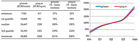 The securitization procedure usually provides for the sale of properties at market prices although it reserves a special protection for the tenants of houses, who have the right of pre-emption to purchase, and are also entitled to a 40.5% reduction in the housing price, whereas a 30% reduction is applied to tenants of non-residential properties. However, this provision does not have an equalizing effect, because the reduction in the market price is independent of the level of household income, and the tenants do not necessarily have a low income [18,19].