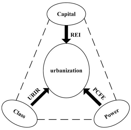 The above studies on the factors influencing urbanization in China were completed from different theoretical perspectives, including the theory of economic development and the theory of urban–rural differences. Agglomeration economy and developmental economics theories can also provide useful theoretical perspectives for the study of the influencing factors of urbanization in China. Notably, these theories were primarily developed from the study of urbanization in Western developed countries. However, the study of China’s urbanization experience shows these theories while providing useful insights into the factors affecting urbanization, they are not sufficient, not only because they reflect the unique Western perspective, but also because China’s historical, political, and economic environment are quite different from that of the West. Our argument is based on the fact that China, as a socialist country, does not fully reflected the characteristics of a developed market economy in the process of opening up its economy to market conditions []. As a socialist country in transition, China’s market-oriented reform adopts a gradual development process. Therefore, we have reason to think that within a broader framework of political economy theory, the theoretical approaches emphasizing the role of institutions in economic, social, and political change can provide the most valuable theoretical insights into the factors influencing urbanization in China.