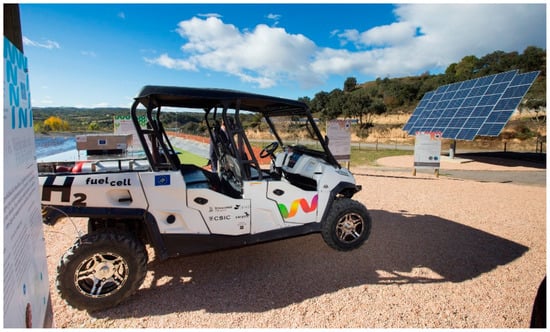 One of the distinctive features of the prototype is the incorporation of a hydrogen production subsystem. The hydrogen technologies are candidates to provide long-term storage in standalone photovoltaic systems, avoiding the need for hybridization with diesel [6,37,38]. However, there are relatively few studies proposing specific off-grid applications, for example, remote base stations [39]. With regard to hydrogen, this work proposes some novelties. On the one hand, the production and use of hydrogen take place in an agricultural context, including irrigation and mobility. On the other hand, the hydrogen produced is extracted from the system, avoiding the need for a big hydrogen storage tank. The prototypes, including the FCHEV, have been operating on the farm for more than two years.