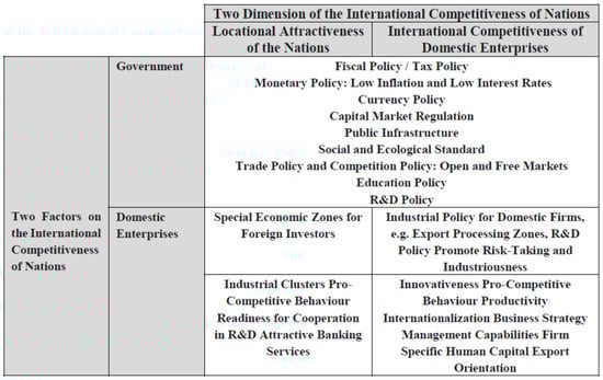 The dimensions of international competitiveness of nations, Source: Mitschke (2008) [39].