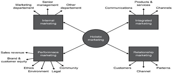 The concepts of “environmental protection” and “advancing with the times” have become trends of globalization. Various industries exist adjacent to green exhibitions; environmentalism is a key concept of globalized economic development in which each nation actively promotes environmental protectionism as a means of achieving economic growth. Therefore, marketing strategies should use holistic methods to achieve success. Holistic marketing is the process of “first fully understanding the relationships between marketing programs, procedures, and activities, then developing marketing programs, procedures, and activities, and finally implementing them” [19]. It comprises four types of factors: (1) relationship marketing, (2) integrated marketing, (3) internal marketing, and (4) socially responsible marketing [21].