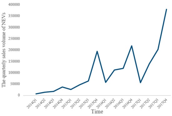 The quarterly sales volume of the NEVs in China: 2013 Q1–2017 Q4.