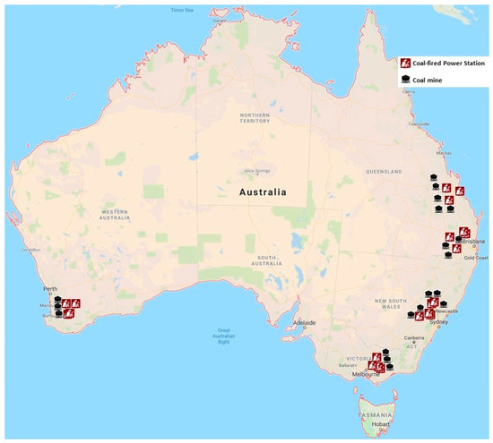 Short distances between mines and coal-fired power stations not only reduces the cost of coal transport between the coal mines and power stations, but it also provides the opportunity to transport the carbonated fly ash back to the coal mine, at low cost. For instance, Stanwell Corporation, which is owned by the Queensland Government and is the state’s largest electricity generator, operates coal-fired power stations at Central and South East Queensland. The 1843 MW Tarong Power Stations are located in the South Burnet in South East Queensland [120], only a few kilometres away from Meandu Mine that provides their coal. Several other coal-fired power stations in Australia are similarly located in close proximity with coal mines (Figure 2) providing a unique synergy and the opportunity to overcome the economic barrier of deploying mineral carbonation technology in Australia’s mining industry, as an economically viable climate change adaptation technology.
