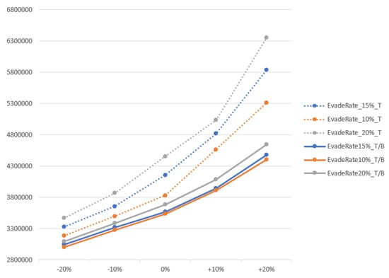 Figure 10 and Table 6 summarize the cost reduction results. The dotted and solid lines in Figure 10 indicate the truck-only and the truck–bike mixture model, respectively. For the averaged scenario where the evade rate is 15% and the demand is +0%, a 14.1% cost reduction was observed. The cost reduction rate varied from one scenario to another. A minimum of 5.7% and maximum of 26.9% in cost reduction was observed.
