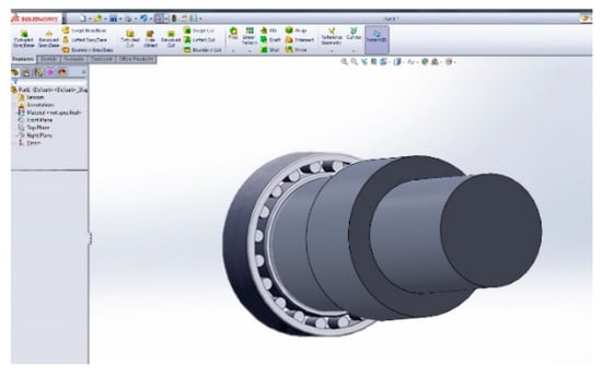 To obtain a generalized model for the study of stresses that appear in the bearing designed in CATIA, the Geometrical Set instrument was used. Thus, it was possible to create links between the roller types in such a way that if the inner diameter of the rollers is changed, all rollers would change. The possibility of installing covers for encapsulating a lubricant inside them to improve the lubrication of the bearings was also considered (Figure 8).