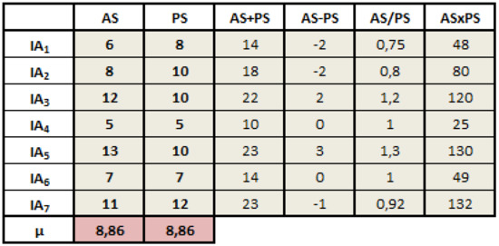 From a quantitative standpoint, the IA typology of belonging is calculated after the figures from the Interaction Matrix (Table 2), by the means of three numerical operators [68].