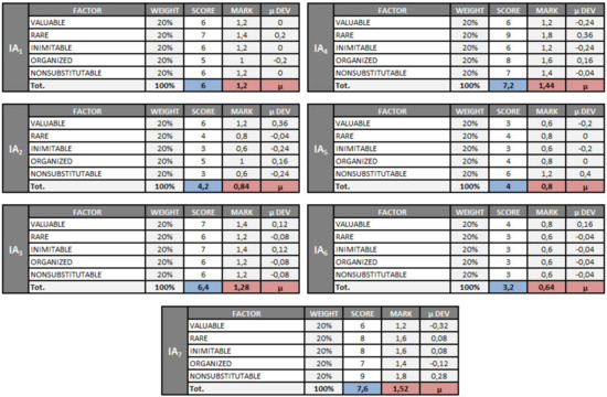 - Chose a weight for the five strategic Factors for each resource (IAi) to be tested
