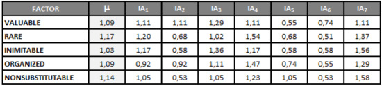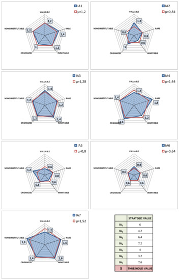 The second unit is focused on competitiveness and on the sustainability of the competitive advantage. According to the RBV and the DC [69,70,71], for a resource to be the basis of a sustainable competitive advantage, it must own some specific attributes (Factors). According to these studies, resources should be valuable, rare, inimitable, non-substitutable (Table 3), and the firm must organize to capture the value unleashed by the resource themselves.