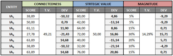 As for the dimension named “Connectedness”, a practical solution for the definition of the Threshold Value for the all set of IAs is represented by the arithmetic mean of the calculated values, as in (11).