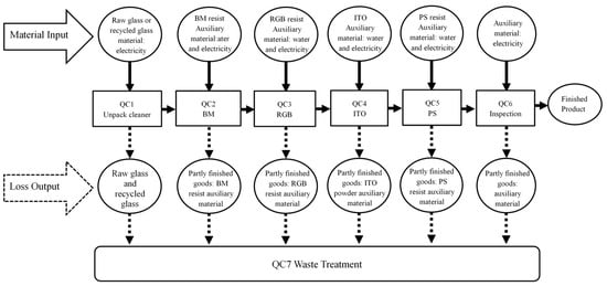 This research adopted the case-study method using a flat-panel parts supplier as an example to analyze the implementation of ISO 14051-based MFCA by the case company and investigate the results. This method is most commonly used in exploratory research for which the relevant qualitative research techniques are convenient [26]. The case study method can disclose the problem and then systematically collect and analyze the problem in a scientific way to find the solution [27]. The importance of this case study is that the process of applying MFCA can provide suggestions for the future installation of MFCA. For example, the setting of the quantity center should be the same as the existing data record and periodic review framework to avoid ineffective use. Second, the historical data should be saved in the operating system, and the material flow currency should be quantitatively linked to the accounting, and the existing management system of each departments should be comprehensively integrated to facilitate the rapid introduction of the product. The analysis of material flow and energy use helps the company understand the relationship between material usage and cost, identify the hot spots of material and cost loss, improve the efficiency of data analysis, and systematically review the process to promote and strengthen the environmental cost management.