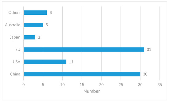 Concerning publications by country, Figure 5 reviews the top six most productive geographical areas. In the ranking, China and the European Union (EU) stand out as the top two countries. China has been the largest producer and consumer of REs, and plays an important role in the world market [32]. In the past years, disputes between China and Japan, the US, and the EU have caught the world’s attention, which makes research on the REs a hot topic. The European Union and the US Department of Energy have categorized RE materials as “critical materials”, while the British Geological Survey has also ranked them on the top of their "Metals Risk List” [8,9]. This seems to be consistent with the research performance of the EU and US in Figure 5.
