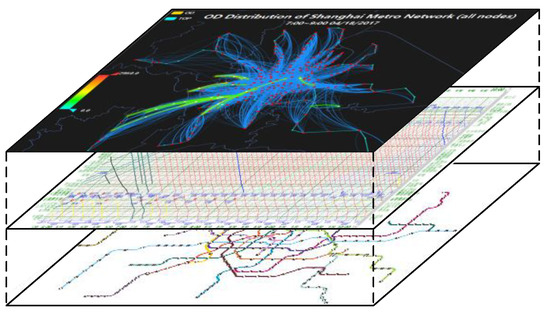 A metro system is an extremely complicated double-load network that is composed of three layers: static physical topology with stations and connections, dynamic network with running trains, and trip network with passengers (see Figure 1). Due to the drastic increase of travel demands, the current passenger flow loading in the network is becoming more and more unbalanced, particularly during peak hours, which can result in several adverse effects as mentioned above.