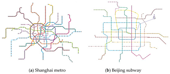 Physical topology of Shanghai metro (a) and Beijing subway (b).