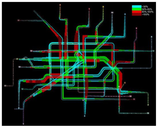 Occupancy of trains on all segments in Shanghai Metro system in morning peak.