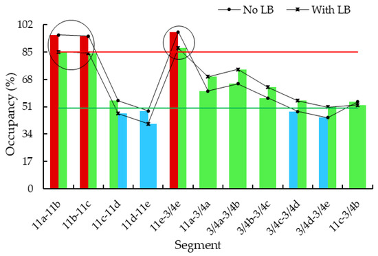 Changes of occupancy before and after LB.