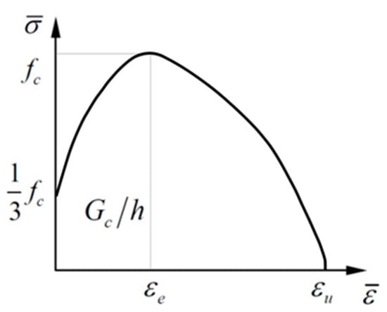 The compressive constitutive model will be modeled either with ideal plastic behavior or with a compression softening model given by a parabolic equivalent stress-equivalent strain diagram, which has been modified for the fracture energy-based model (Figure 2)