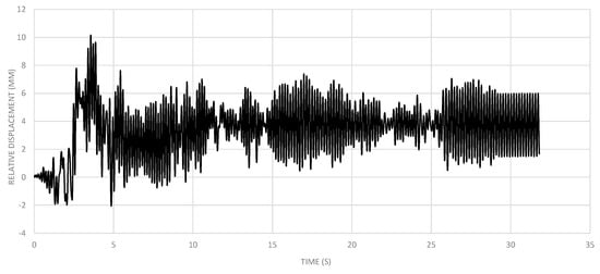 Relative displacements obtained in function of time, for the case of 100% excitation.
