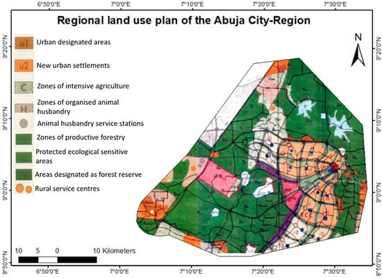- AGIS (Abuja Geographic Information Systems). FCT Regional Plan 2000: Proposed Landuse; AGIS: Abuja, Nigeria, 2007.