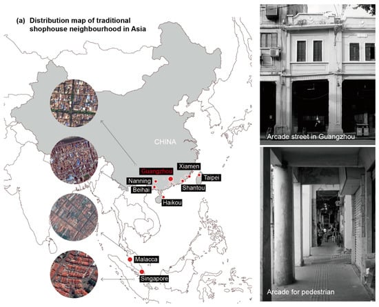 - Han, W.; Beisi, J. A Morphological Study of Traditional Shophouse in China and Southeast Asia. Procedia Soc. Behav. Sci. 2015, 179, 237–249. [Google Scholar] [CrossRef]