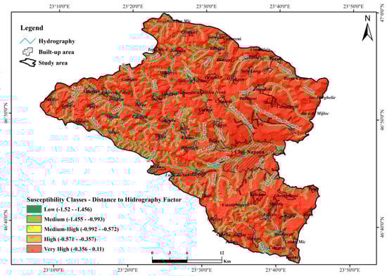 Susceptibility to landslides according to distance to hydrography.
