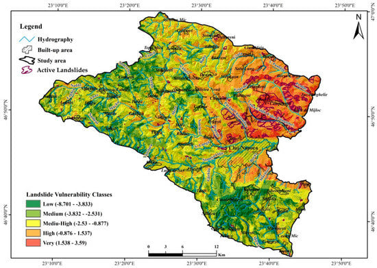 From the point of view of the risk induced in the territory following the analysis of the final outcome of the modelling, several hotspots of major importance stand out. The surface overlapping the northern hills in the city of Cluj-Napoca falls within the category of very high landslides susceptibility, thus inducing a high risk on the territorial infrastructure of housing and services (residential structures, urban networks, tourist facilities) and on the communication lines developed in the respective area [].