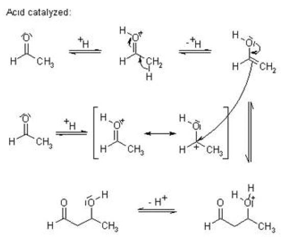 Mechanism of the aldol addition in acid catalyzed (after [38]).