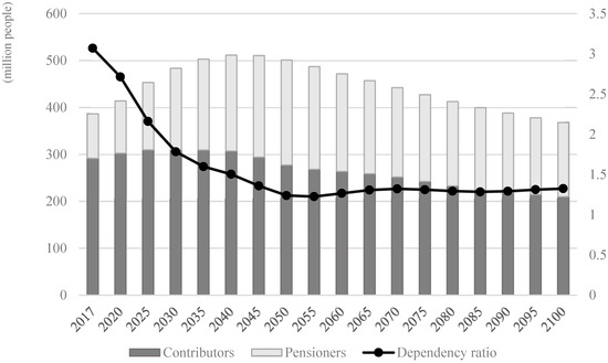 Nowadays the challenge of the sustainability of pension system has become the key point in the reform of social security system for governments all over the world. With the development of practices in various countries, the connotation of pension sustainability has been enriched and developed. In 1994, the financial sustainability of public pension system was firstly mentioned in the World Bank’s report [1], in which the balance of the pension system was also measured under the influence of population aging. Holzman and Hinz [2] point out that the “sustainability” of the pension system refers to the financial stability that pension plans should have at present and in the future. It is related to the total economic output of a country. Under the constraint of the total economic output, the sustainable pension system should be able to provide the beneficiaries with the pre-promised benefits without taking any improper measures. By analyzing the effects of pension reforms, Barr [3] holds that the major concern needed to be addressed in designing the pension system is the conflict between long-term sustainable demands and the impact brought by short-term political pressure and economic fluctuation, which emphasizes on a balance between political sustainability and economic sustainability. Political sustainability depends on the level of pension benefits, pensionable age and people’s choices of risk diversification. Economic sustainability depends on political support for funding to meet the demand of future pension benefits and the political feasibility in adjusting the amount of benefits. From a holistic approach, Aaron argues that the sustainable reform of pension system needs to take into account the adequacy of pension benefits and fiscal affordability, so as to achieve the goals of poverty alleviation and income smoothing to the greatest extent within institutional constraints [4,5].
