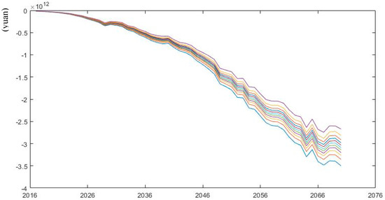 The above calculations are based on the baseline assumptions. If the actuarial assumptions change, the pension gap will produce different results. To analyze the impact of changes in actuarial assumptions on the projection results, we use sensitivity analysis. Many studies have examined the impact of changes in demographic and macroeconomic factors on the change of projections [17] and [37] and some have concerned about the impact of postponing the retirement age on the changing results [11,20]. However, less attention has been paid to the impact of policy parameters. This paper will examine the impact of mortality rates as well as combination of policy parameters.