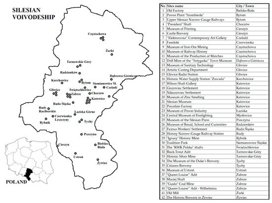 The IMR sites on the Silesian voivodeship map. (Source: The Industrial Monument Route information [55]).