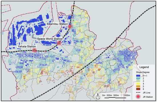 The average lifespan of a Japanese wood constructed building is about 30 years []. The dwellings in the Yahatahigashi-ku area were built from 1960 to 1970, and have already been in use for about 50 years. Due to a combination of the aging building and inconvenient living environment, some inhabitants have moved out, abandoning their dwellings. Most of the residents of the high slopes are willing to move out, because the area is inconvenient for their changing lifestyle, but many remained because they cannot afford to buy an apartment somewhere else. In the meantime, the local government is trying to help these residents. This case study provides suggestions to the local government for the redevelopment of the lower area of town, which would provide low-cost, subsidized apartment buildings, for this at-risk population. The problems faced by the Yahatahigashi-ku exist throughout Japan, as well as in other industrial countries, and the approach to redevelopment discussed in this paper might be of use, beyond this particular case.