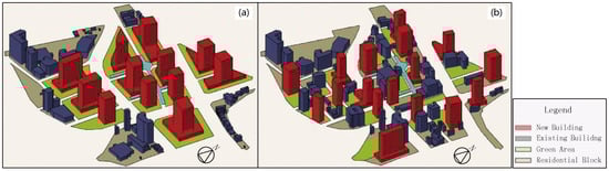 To forecast shadow conditions, according to different urban planning methods in the selected regeneration area, we used Jw_cad, which is a Japanese software program for architects and urban planners, designed to provide two- and three-dimensional drawings that forecast continuous shadow conditions in a single day [].