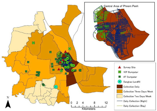 - Kum, V.; Sharp, A.; Harnpornchai, N. Improving the solid waste management in Phnom Penh city: A strategic approach. Waste Manag. 2005, 25, 101–109. [Google Scholar] [CrossRef] [PubMed]