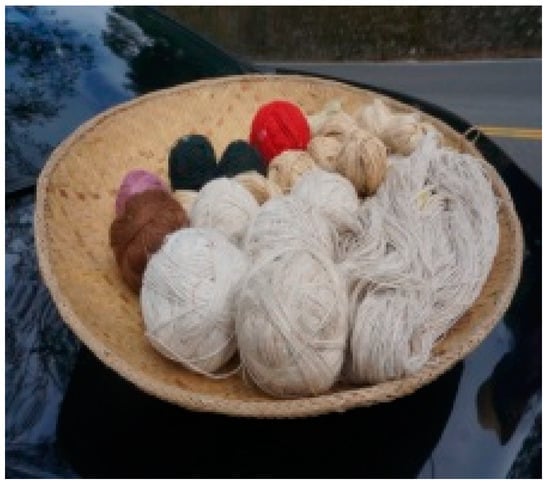 However, when traditional techniques are transformed into economic production, the weaving process seems to focus on the visual reproduction of traditional patterns. In order to reap economic benefits, easy-to-operate high looms are naturally selected as trainees find it easier to start with it, and the weaving time is shortened to reduce fatigue. Factory-produced threads replaces the self-planted materials, as self-twisting is very complicated and slow (Figure 17). Under this circumstance, what will the cultural ecosystem of traditional weaving lose? Yulan [] from Atayal shared her own experience of learning high weaving and ground weaving, and she became a weaver after practicing with the high loom for several months. Although she is very good at weaving, she is still concerned about her technique. Then she found out that such concern resides in the fact that learning with “High loom is confined to technique without culture”. Hu [] also emphasized that we should discuss and pay attention to how indigenous commodities are used as tools to carry forward indigenous cultures. Traditional Seediq weaving involves various elements such as historical memory, personal training, an understanding of the natural environment, glory and belief. The high loom is easy-to-use and easy-to-learn. The autonomy and importance of the body are reduced, while the operation of the backstrap loom lies in concentration, diligence, patience, and personal training []; unique and superb weaving skills can show the social status and glory of the female weaver, and the study of ethnic group can be linked with the memories and habits in the past, which is not found in high-loom production. Another example is to resort to a large number of production lines instead of using self-made materials, which cause the knowledge of environment and ethnic language to disappear. Today, the cultural revitalization of high-loom production in the form of commodities obviously fails to present and convey natural knowledge, personal cultivation, continuity of historical memory, traditional social relationship structure, values, etc. The worst consequence of this problematic revitalization will be the disintegration of local knowledge.