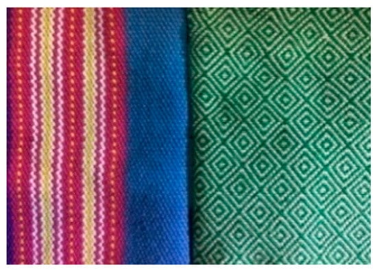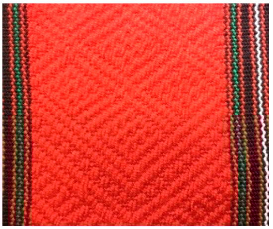 Weaving was a demand of daily life and beliefs in the traditional Seediq society, thus Seediq weaving is a source of pride. However, since 1895 when Japan started to colonize Taiwan, civil weaving was restricted, and Indigenous people were forced to buy cloth instead of weaving it themselves. Since World War II, life has become more convenient as the demand for traditional clothing has declined, which spared women weaving cloth day and night. Although the Indigenous people no longer weave cloth for clothes and quilts, most of the 40- and 50-year-old people interviewed by the researchers recollected that they would see their elderly weave when they were young. While some of the weaving products were for tourists or collectors, it was mostly for the weavers’ daughters and relatives. Some interviewees in their 50s recalled that their dowry included nearly 100 pieces of cloth, which leads us to deduce that by the 1980s weaving was still common among tribal people, but it did die down afterwards. After 1998 when the government encouraged local cultural industries, Indigenous Seediq tribes set up government subsidized studios, which aim at improving the indigenous economy. The traditional handicraft in this period gradually returned to the Indigenous mind as a “cultural symbol” []. Seeking economic benefits, most of the subsidized training courses symbolized by cultural revival are short-term courses taught on high looms (Figure 12) or desktop looms, and the weaving techniques tend to be simple and easy-to-learn, such as plain weaving and twill weaving [] (Figure 13), while the traditional backstrap loom is seldom used.