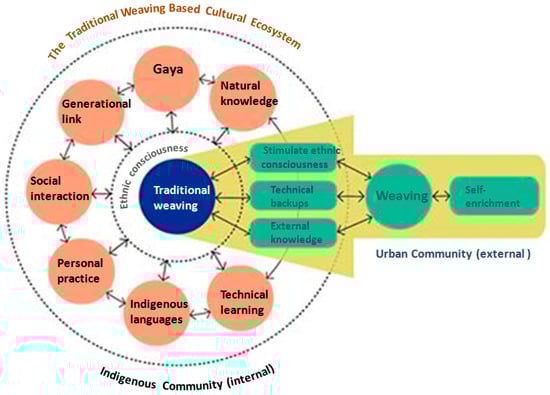 The linkage between Indigenous and urban communities for a traditional weaving, as based cultural ecosystem (formulated by this study).