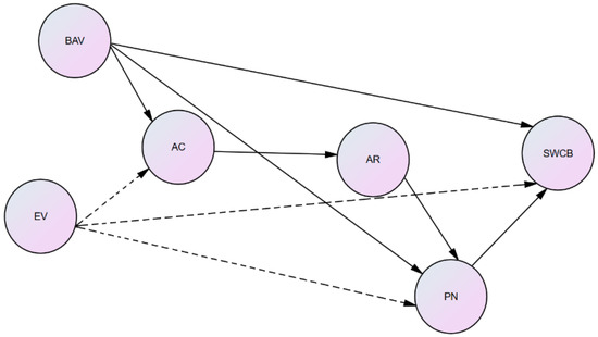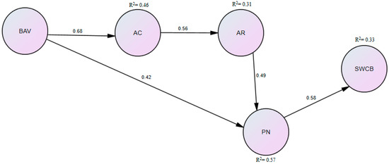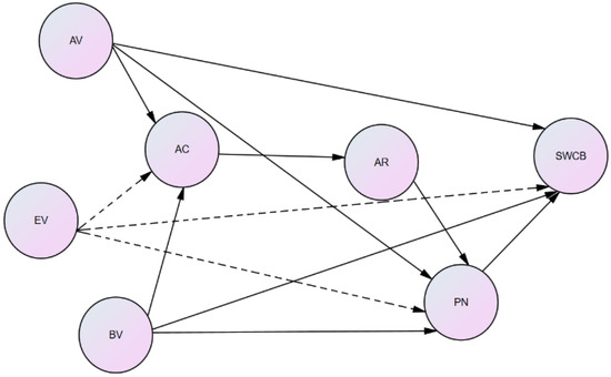 - Values indirectly influence SWCB through AC, AR and PN.