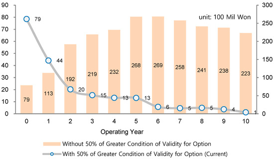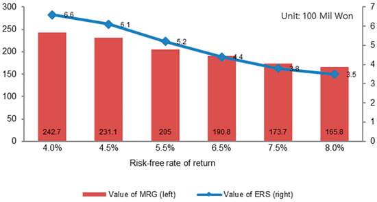 Figure 5 shows the value of MRG and ERS of the A-line Project based on the current exercise conditions for the MRG when 5.5% of the risk-free rate of return is applied. The value of MRG is estimated at 20.5 billion KRW and the value of ERS is estimated at 520 million KRW.