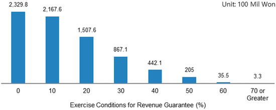 Note that in the current concession agreement, the revenue would be guaranteed only when the actual revenue is 50% or higher of the contract revenue. For the case of the second year, the ratio of the expected revenue to the contract revenue was estimated at 52% (Figure 3) and the expected government payment was analyzed as 4.4 billion KRW. However, the expected government payment could rise up to 11.3 billion KRW if the project is not required to meet the exercise conditions.