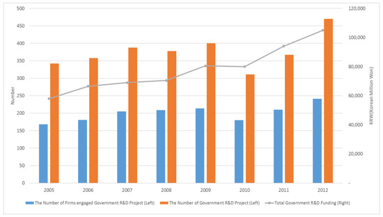 This study controlled the factor of whether a firm was an “initial public offering (hereinafter “IPO”) firm” or a “venture certified firm” because these were the elements that, by providing a good signal of the firm’s valuation or reputation, could affect government R&D support selection. The IPO firms have already received assessments of technological innovation and growth potential for the IPOs [80]. The IPO process itself could have the function of scouting firms that are receiving government R&D subsidies. In addition, the venture certified firm is a firm that has attracted venture investment and has a relatively high technological innovation capability and growth potential compared to other firms, or it is a government-certified firm that has recognition of superiority in technology development. South Korea manages small and medium-sized “venture firms” with a unique certification system. For these reasons, being an IPO firm or venture certified firm positively affects the chances of receiving government R&D subsidies and it is thus a control variable in this study.