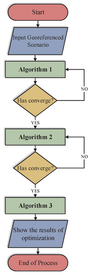 The Optimal Routing of Electrical Distribution Networks is defined as a NP-complete problem, to deal with it a heuristic model is used. The model is divided into three algorithms; Algorithm 1 solves the problem in MV network, while Algorithm 2 works with the resolution in LV network, and Algorithm 3 determines the allocation of the rooftop PV in the scenario. In Table 1 are presented the variables used in the model.