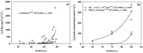 | Soil Moisture | N2O Emission Rate (nmol N g−1 h−1) | |