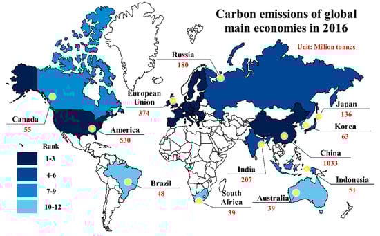 Climate change is one of the most challenging issues faced by mankind in the 21st century, and it will bring a series of problems, such as glacial recession, extreme weather, spread of disease and collapse of the social system. According to the fifth assessment report (AR5) published by the Intergovernmental Panel on Climate Change (IPCC), as temperature has increased, the sea level has risen by 19 cm, and the future situation will be even worse [1]. Currently, greenhouse gas emissions from the combustion of fossil fuels have reached unprecedented highs. To mitigate climate change and avert further deterioration, the international community promised to cope with global warming by signing the Paris Agreement, and the contracted parties agreed to participate in mitigation actions via independent contributions.