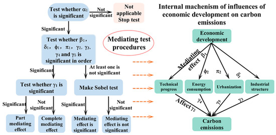 Procedure of the mediating test model and internal influencing mechanism of economic development on carbon emissions.