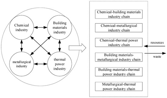 At the level of an energy-intensive industry chain, every two industries can combine into six typical and representative energy-intensive ecological industry chains according to the relationship between the transfer and utilization of materials and energy between four energy-intensive industries. Energy-intensive industries lengthen the industry chains further than a single industry, and get more resources recycled to achieve a flow of by-products and waste between different industries. As a result, resource utilization can be improved, and the emission intensity of pollutants can be reduced, such as exhaust gas, waste water, and solid waste.