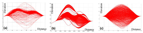 As previously mentioned (in Equations (16) and (17)), the minimum curve length should satisfy the sight distance requirements. Therefore, the minimum curve length is based on sight distance and corresponding equations. The maximum length of the curve for ‘ith’ IP is