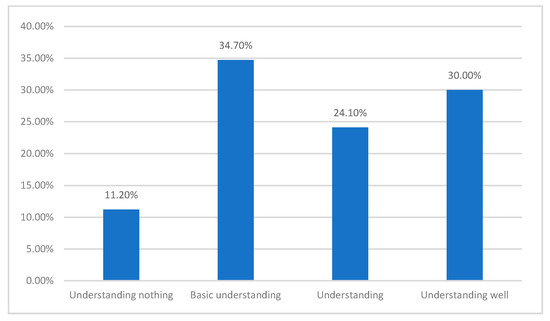 Furthermore, the knowledge of all the respondents on the SD of AHT was another crucial factor impacting the reliability of the findings. Therefore, the authors of this paper insist that the statements from respondents who did not have an understanding of architectural heritage cannot ensure the reliability of the investigation. Therefore, all the respondents were selected from the heritage site for enhancing respondents’ level of understanding of the architectural heritage. However, as shown in Figure 3, there still were 11.2% (40 respondents) of all the respondents lacking even a basic knowledge of architectural heritage. Therefore, the statements from these 40 respondents were neglected in the following steps of this research. The remaining 317 valid questionnaires provided a good foundation for the objectivity and credibility of the questionnaire results.