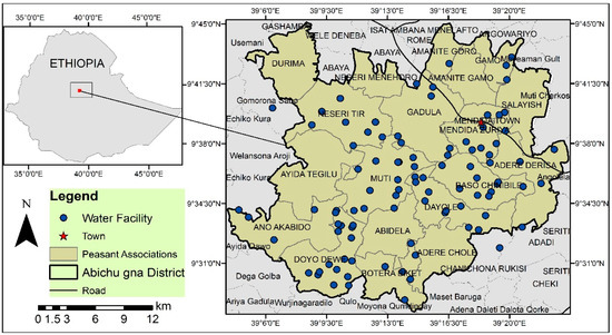 - Abichu Gna Distrcit Water, Mines and Energy Office. 2017/18 Annual Report; NDP: Mendida, Ethiopia, 2018.