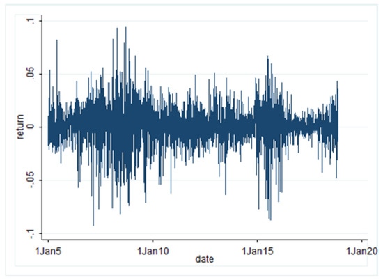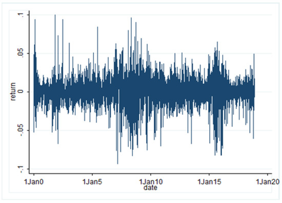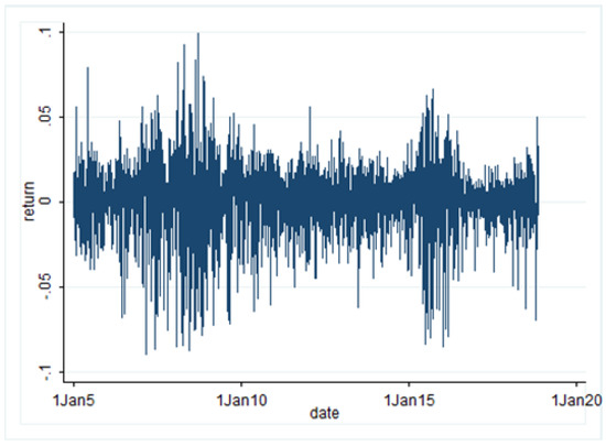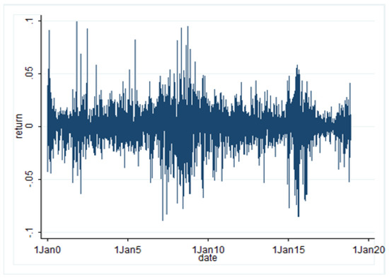 This paper uses the daily returns of four indices: SSE, SZSE, SHSE-SZSE300, and CSI500. The data source is the RESSET database (www.resset.cn). The SSE Index and the SZSE Index that were selected in this paper reflect the quotations and trends of the Shanghai and Shenzhen markets, respectively, while the SHSE-SZSE300 index synthetically reflect the overall quotations and trends of the Shanghai and Shenzhen markets. Component stocks are mainstream stocks with good market representativeness, high liquidity, and active trading, which can reflect the return of mainstream investment in the Chinese stock market. The CSI500 Index that was selected in this paper reflects the return of investment and the overall quotations and trends of stocks of small and medium enterprises, which comprehensively embody the stock price performance of a group of small and medium enterprises in China’s A-share market. Table 1 shows the sample.