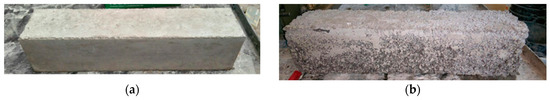 The manufacturing procedure of mixes (Table 1) has been carried out according to the specifications in the European standard EN-12390-2:2001 [22]. For each of the different concrete mixes (i.e., mix I, II, III, IV, and V), 21 litres were produced, which were cast into four specimens of 4.4 litres, each with prismatic form 440 × 100 × 100 mm3. The concrete prisms were cured in water at 20 °C for 42 days, higher than 28 days, so it can be considered that the strengthening process was fully completed.